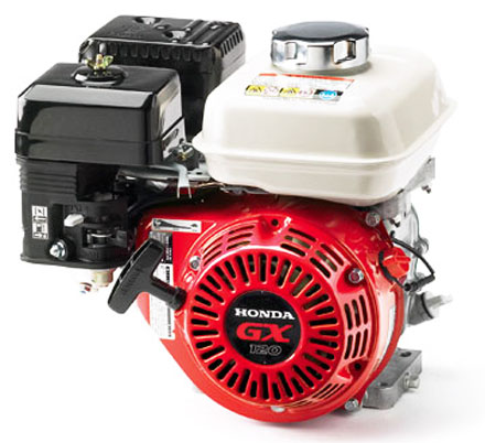 Двигатель Honda GX120 - применяется дорожно-строительной техники (виброноги, виброплиты), мотокультиваторы, бензиновые электростанции (мощностью около 1-2 кВт), водяных насосов и другого промышленного оборудования и т.п. Четырехтактный бензиновый двигатель Honda GX-120 с верхним расположением клапана цилиндра (OHV), горизонтальным валом и воздушным охлаждением, цилиндр расположен под углом 25°.