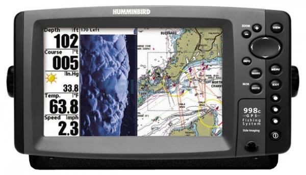 Эхолот Humminbird 998c SI Combo работает от напряжения 10-20 В постоянного тока, обеспечивая 1000 Вт RMS (среднеквадратической) и 8000 Вт пиковой мощности, в диапазоне частот 200 кГц (угол конуса 20°) и 83 кГц (угол конуса 60°) и разделяет цели на расстоянии 6,35 см друг от друга, для выявления близко находящихся рыб. Side Imaging работает на частоте 455 кГц (угол сканирования 2x86° по обе стороны лодки), сканирует на глубине до 45 м и охватывает площадь 73 м. Down Imaging работает на частоте 800 кГц (угол сканирования 55° снизу лодки) и сканирует на глубине до 45 м. GPS включает в себя 3000 путевых точек, 50 маршрутов и 50 треков по 20000 точек каждый. Имеет 2 слота для карт памяти, для сохранения путевых точек и навигационных карт. Совместим с картами Navionics.