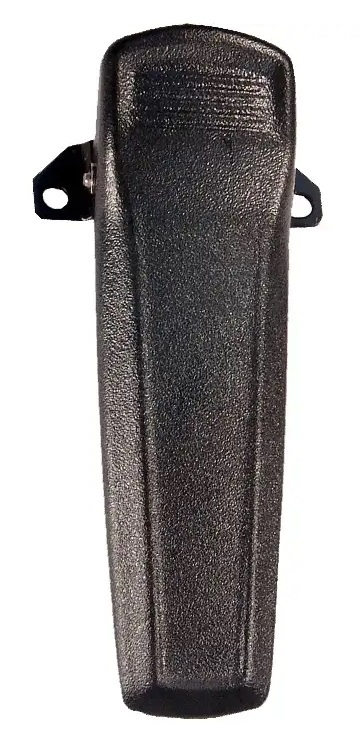 Пластиковый зажим для ремня с упругой металлической скобой крепится к рации с помощью винта для удобства ношения и переноски.