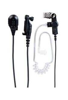 - Наушник со съемной прозрачной акустической трубкой, клипсой, встроенным PTT и микрофоном (черный).