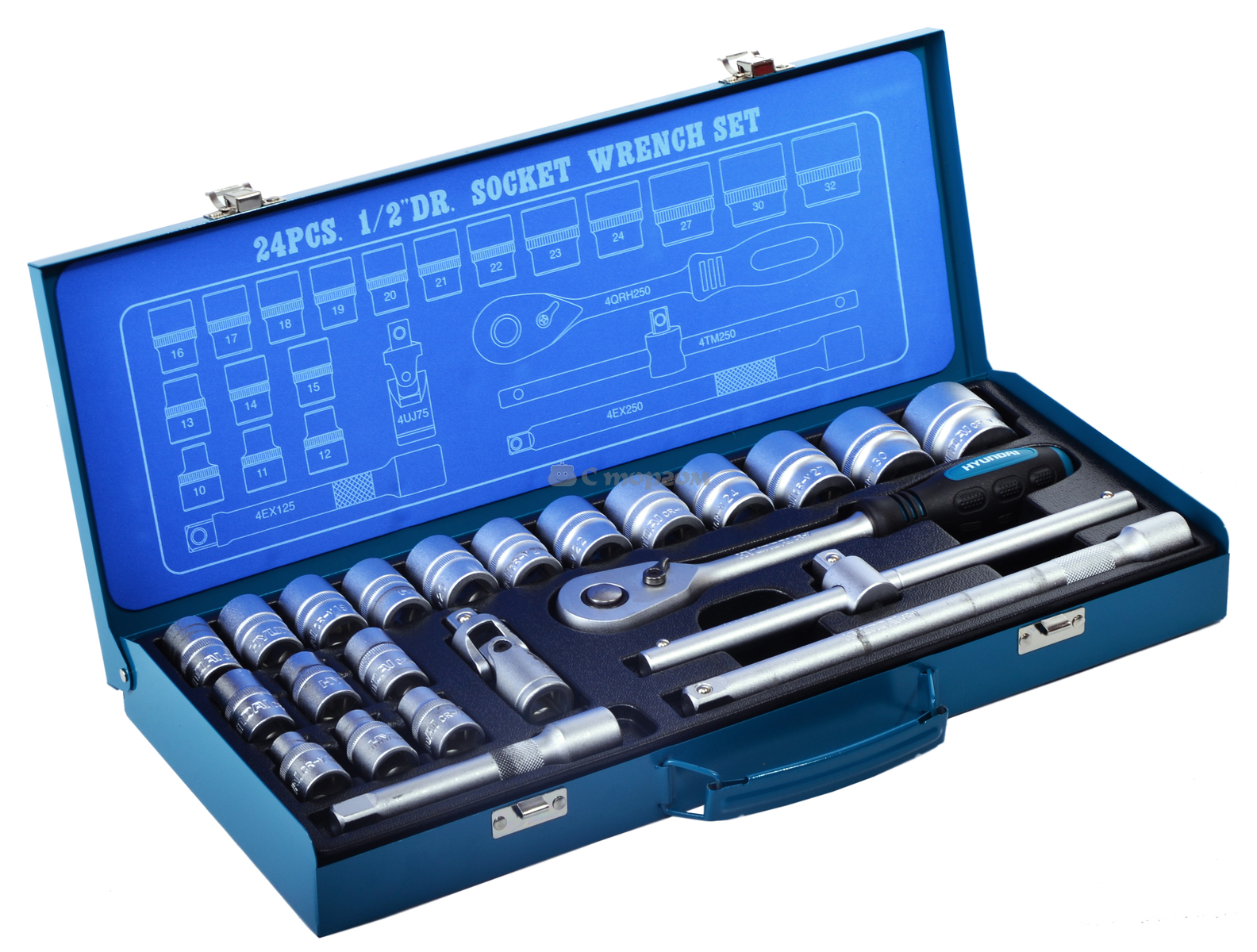 Универсальный набор инструмента 24 предмета Hyundai K 24 отличается высоким качеством исполнения. Инструменты выполнены из прочной хром ванадиевой стали. Квадрат 1/2. Крепкая трещотка в наборе на 72 зуба. Профиль торцевых головок SUPER LOCK позволяет работать по изношенному на 30% крепежу, предотвращает износ нового крепежа. Изделия размещены в металлическом кейсе. Такой набор будет полезен как в домашней мастерской, так и в автосервисе.