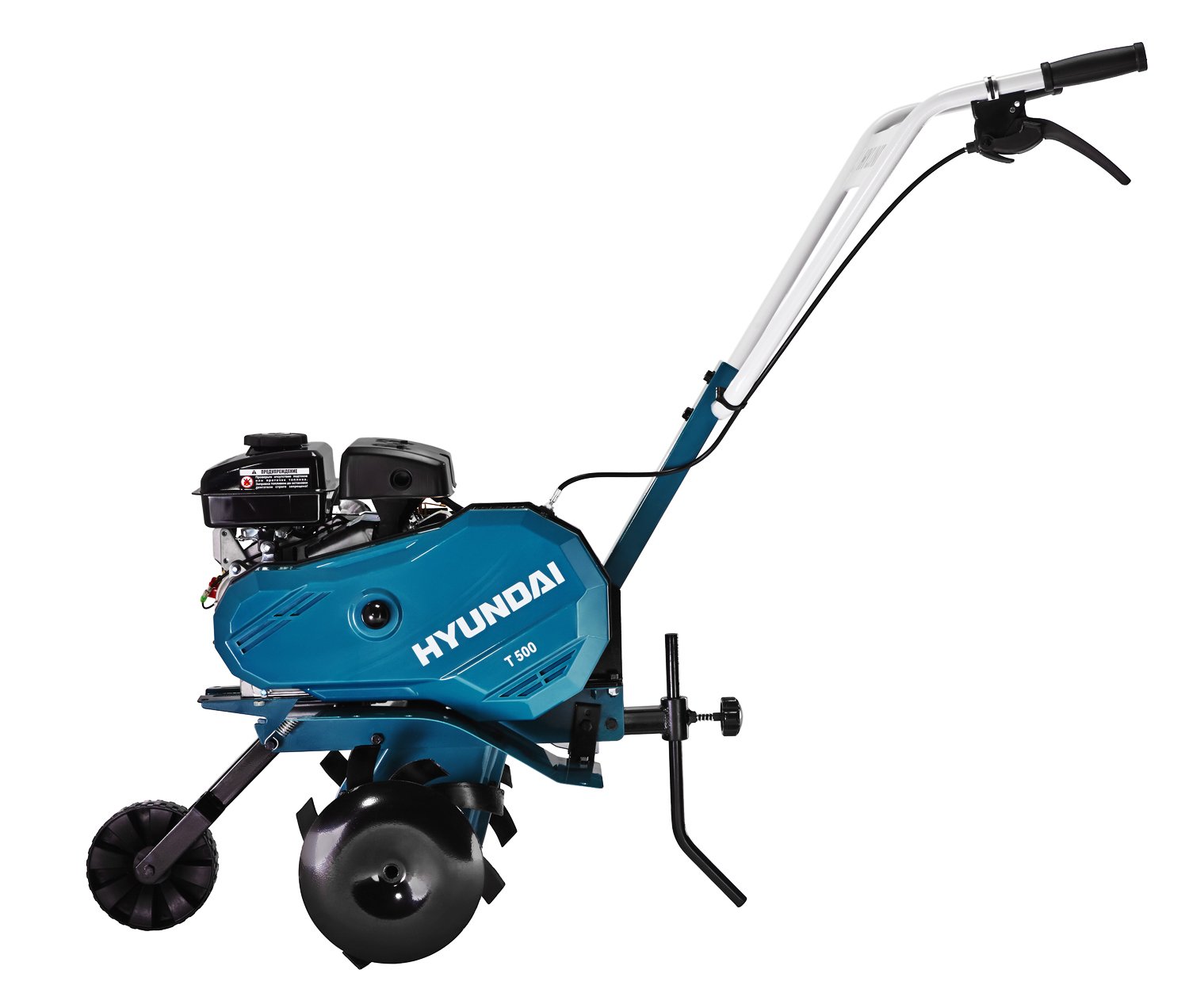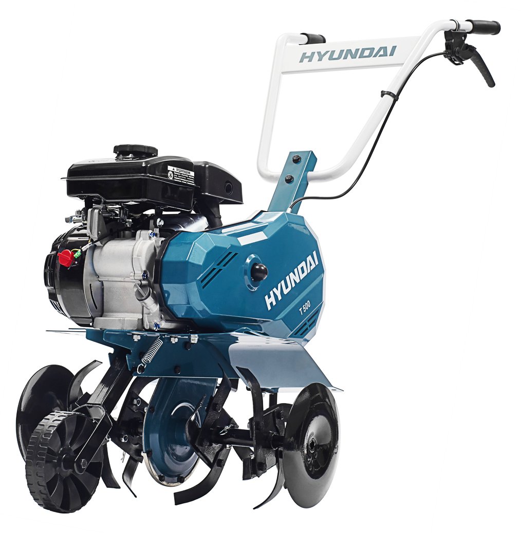 Культиватор HYUNDAI T 500 это современный аппарат от хорошо зарекомендовавшей себя фирмы. Агрегат полностью адаптирован под отечественные условия эксплуатации и топливо, что делает его неприхотливым и нетребовательным в работе устройстве. Удобная рукоять культиватора регулируется по росту любого оператора, что в сочетании с эргономичными  элементами управления поможет ему стать максимально удобным в использовании. Модель оснащена боковыми кромкорезами, а так же колесом для транспортировки культиватора.