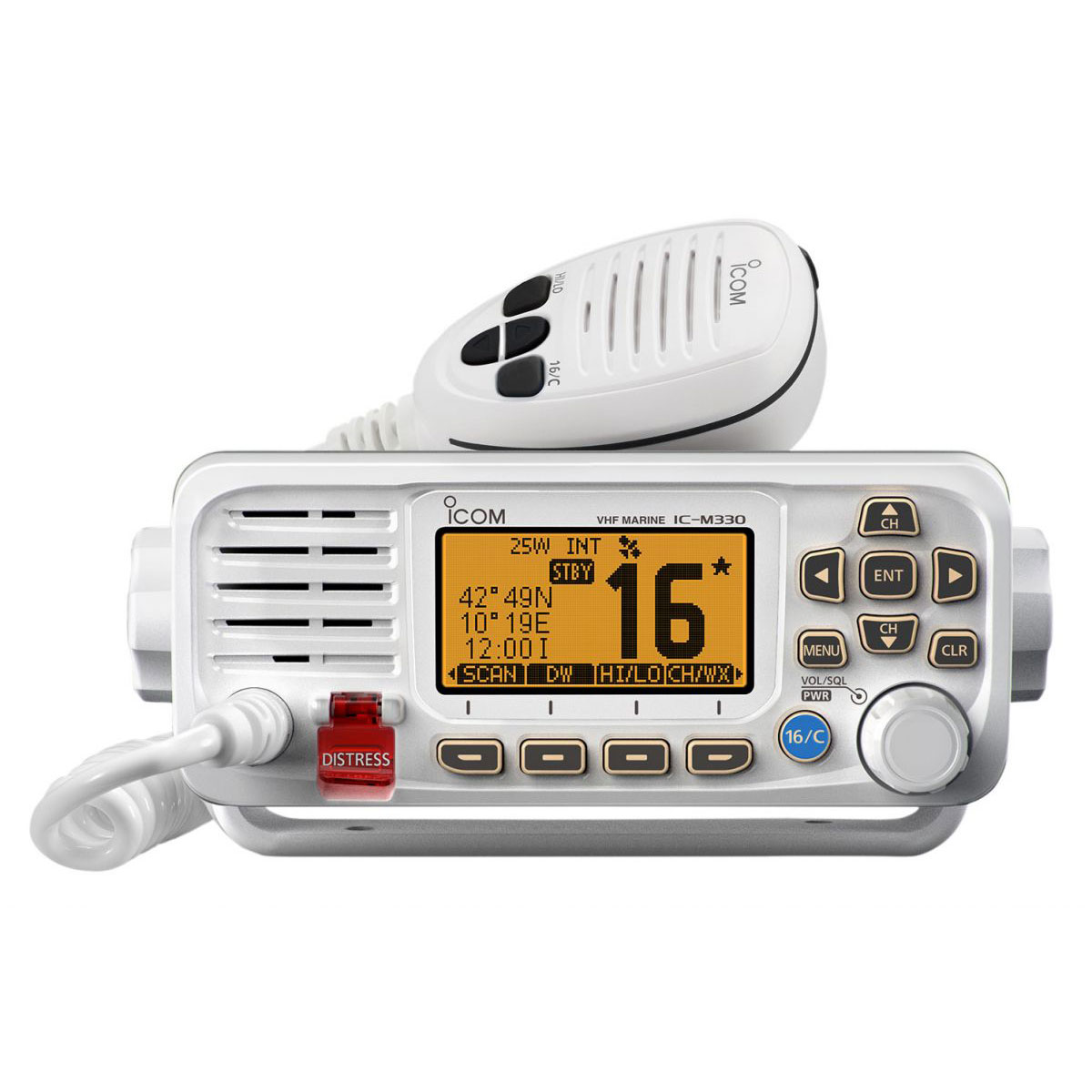 Icom IC-M330 – компактная бортовая радиостанция морского диапазона с ЦИВ (Цифровой избирательный вызов) класса D. Имеется возможность подключения к судовой навигации благодаря наличию интерфейса NMEA. Стандарт водозащиты рации – Ipx7, который позволяет погружаться радиостанции в воду на глубину до 1,5 м сохраняя свою работоспособность. Запатентованная функция «AquaQuake» позволяет очищать тангенту от воды с помощью ультразвука.
