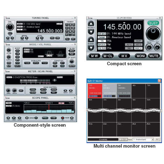 Сканирующий приемник Icom IC-PCR-1000 , Сканирующий приемник Icom IC-R10 , Сканирующий приемник Icom IC-R8500 , Сканирующий приемник Icom IC-R75 , Сканирующий приемник Icom IC-R3 , Сканирующий приемник Icom IC-R5 , Сканирующий приемник Icom IC-RX7 , Сканирующий приемник Icom IC-R6 , Сканирующий приемник Icom IC-R20 , Сканирующий приемник Icom IC-R30
