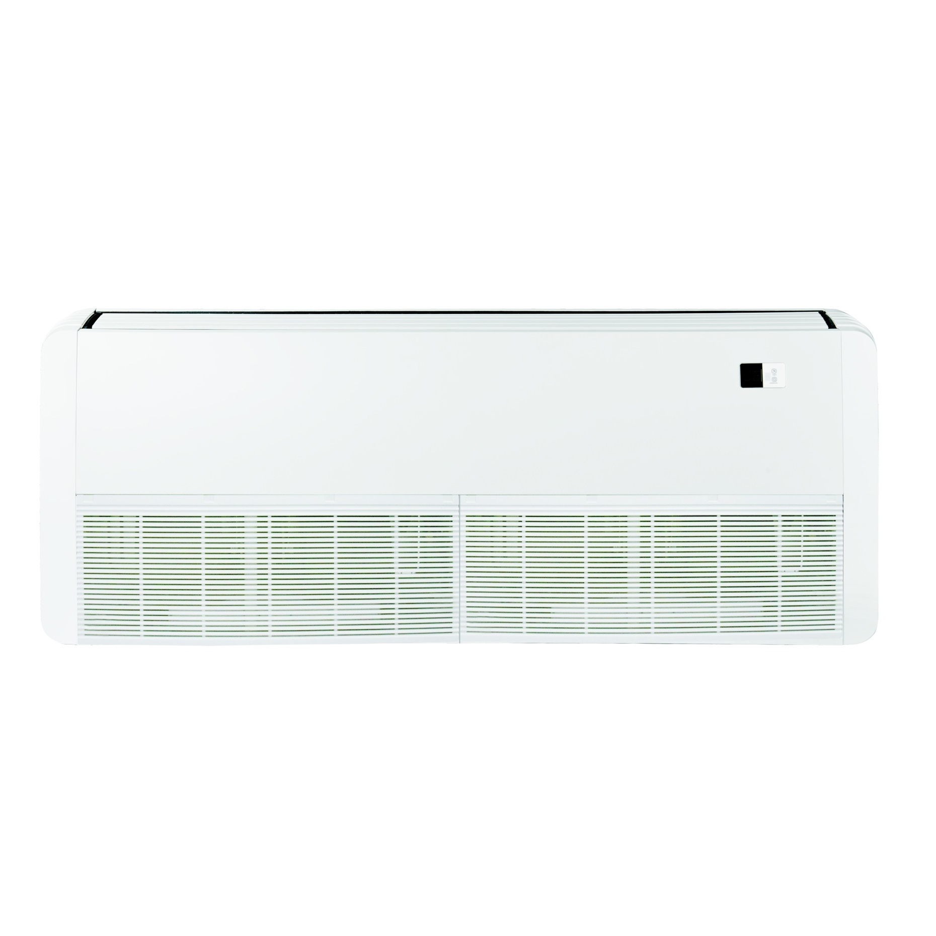 Сплит-системы напольно-потолочного типа можно монтировать на потолке или стене, соответственно, учитывая специфику планировки и размещения предметов в помещении. Основная раздача воздуха происходит только в 1-м направлении, дополнительное отклонение потока в стороны обеспечивают направляющие ламели с ручной регулировкой, отклонение воздушных потоков по вертикали можно отрегулировать с помощью отклонения жалюзи. Все напольно-потолочные внутренние блоки снабжены пультом ДУ в комплекте поставки. Проводной пульт можно установить опционально.