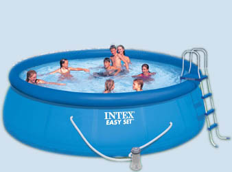 Надувной бассейн Intex Easy Set Pool с непрозрачными синими стенками. Бассейн легко и быстро устанавливается без применения технических средств. Процесс сборки бассейна до наполнения водой занимает 15 минут. Технология SUPER-TOUGH дает стенкам бассейна тройную прочность.