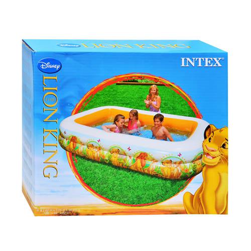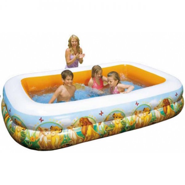 Яркий детский надувной бассейн Intex 57492 в оформлении стилизованный Диснеевскими персонажами из серии Король лев. В форме прямоугольника, которая дает дополнительную жесткость, надувное рефленое дно, для удобства эксплуатации предусмотрен сливной клапан.