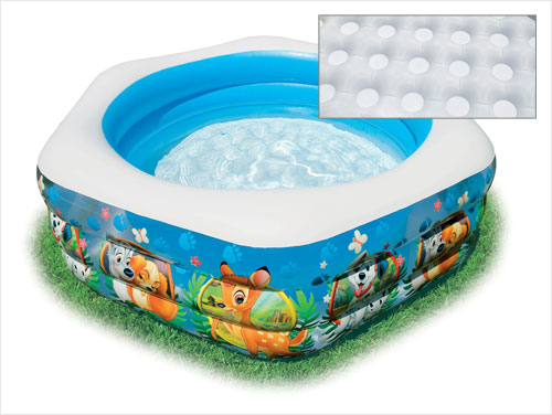 Надувной детский бассейн Intex 57496 "Дисней" — прекрасная шестигранная модель из прочного винила с широкими высокими безопасными бортами. Яркие и красивые аппликации стенок бассейна Intex с любимыми детскими персонажами мультфильмов "Дисней" понравятся всем без исключения. Бассейн Intex 57496 выполнен в виде трех независимых воздушных камер с двойными клапанами. Комфортное надувное дно имеет противоскользящее покрытие, гарантирующее полную безопасность ребенка.
