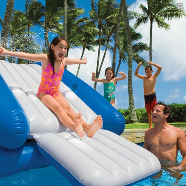Великолепный аттракцион для Ваших детей. Отдыхая на любом водоеме, будь то море, река, пруд и даже бассейн на дачном участке дети будут купаться и плескаться на скорости съезжать в воду, получая массу положительных эмоций.