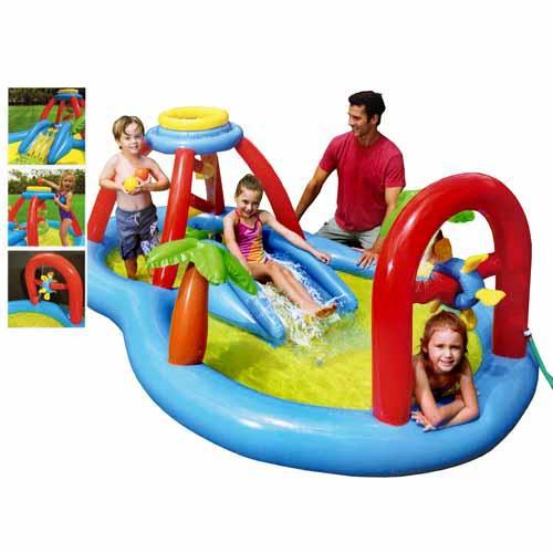 Надувной детский игровой центр Intex Windmill Blow Play Center представляет собой надувной мини-бассейн с горкой. Игровой центр предназначен для активных игр одного или двух детей от 3 до 6 лет. Центр представляет собой надувную конструкцию – мягкую и безопасную. Если к игровому центру подключить обычный садовый шланг, то получится бассейн с фонтанчиком. Специальный водосток предотвращает перелив бассейна. В комплект 6 разноцветных пластиковых мячиков.