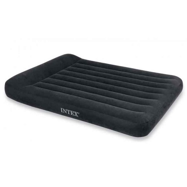 Прочный водонепроницаемый винил — это материал, из которого изготовлен надувной матрас Intex с подголовником. Покрытие, а также боковые части матраса изготовлены из флокированного покрытия (велюр), что делает его приятным на ощупь, и не дает сползать с него постельному белью.