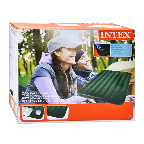 Полуторный надувной матрас Intex имеет встроенный механический насос при помощи которого вы сможете накачать свой матрас в любых условиях. Одним из главных достоинств такой конструкции является независимость от источников питания и экономия веса и объема при отдыхе на природе или туристических походах, так как не требуется брать с собой насос. Специальная конструкция (продольные перегородки) обеспечивает поддержку и ультрамягкость. Верхняя часть матраса покрыта искусственным велюром, нижняя гладкая, легко моется и чистится от загрязнений. Быстрая очистка матраса особенно важна при эксплуатации надувного матраса на природе.