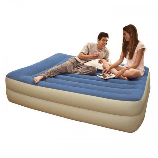 встроенный электрический насос, работающий от сети 220В, за минимальное время надувает кровать и дает возможность отрегулировать ее упругость, стоит лишь нажать на кнопку и через 3,5 минуты надувная кровать будет приведена в рабочее состояние;