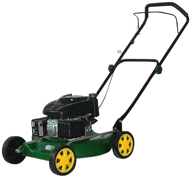 Перемещение газонокосилки Iron Angel GM 46 M осуществляется вручную, имеются прочные колеса диаметром 178/203 мм (передние/задние) обеспечивающие надлежащую маневренность, несмотря на отсутствие механизма самоходного движения, перемещение агрегата не составит труда, чему также способствует небольшой собственный вес изделия. Собрана газонокосилка на базе бензинового двигателя Loncin объемом 139 куб.см., имеющего мощность в 5,0 л.с. Простая система запуска дополняется неплохими рабочими характеристиками собственно двигателя, гарантируется стабильная непрерывная работа при различных внешних условиях.