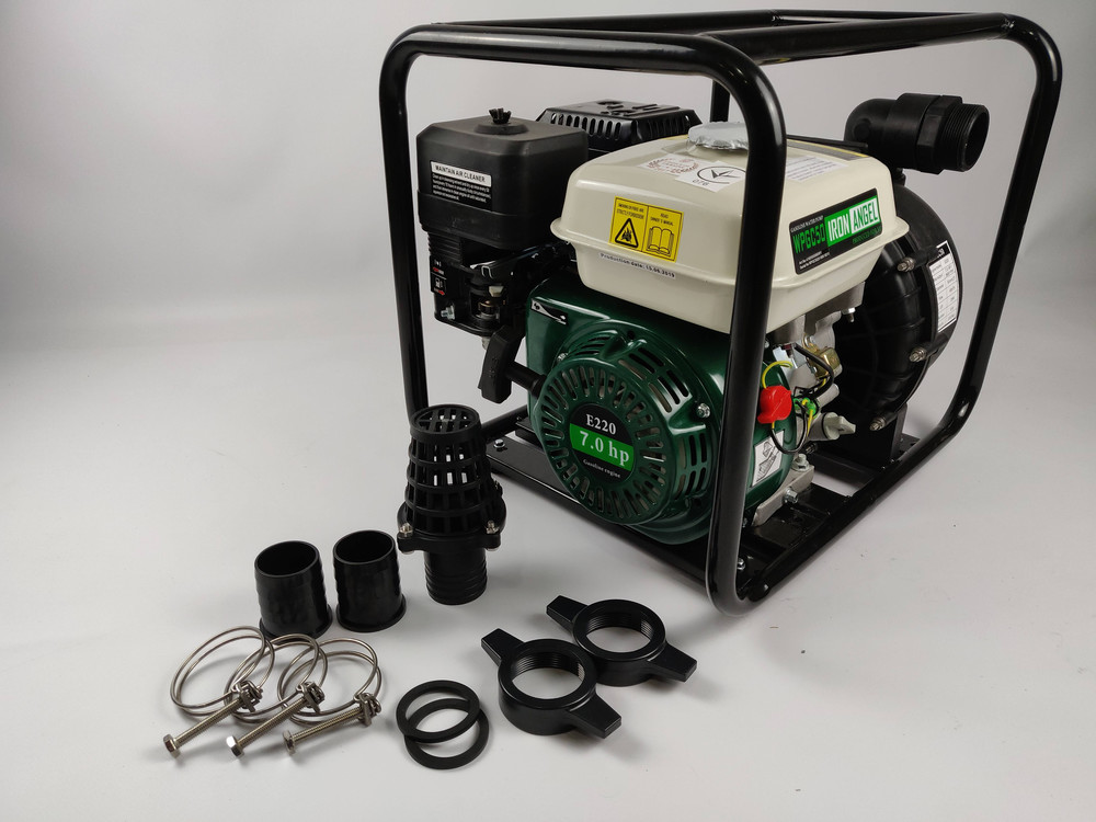 Производительность м3/ч (л/мин): 36(600) Диаметр всасывающего и выходного отверстия (мм): 50 Высота подъема (м): 25 Глубина всасывания (м): 5 Модель двигателя: Е 200 Тип двигателя: 4-х тактный Мощность двигателя (л.с.): 7,0 Объем топливного бака (л): 3,6 Топливо: бензин Объем масла в картере (л): 0,6 Рекомендуемое масло: SAE 10W30 Вес (кг): 27