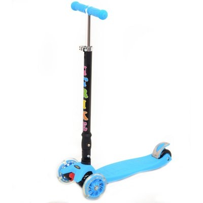 Самокат iTrike Maxi JR 3-012-1 имеет регулируемый по высоте руль, светящиеся колеса и заднее сдвоенное колесо.