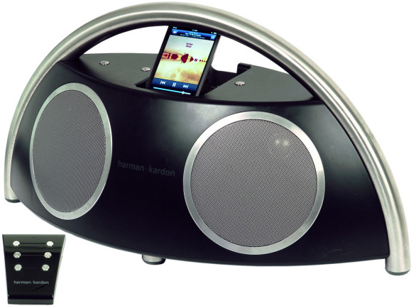 Колонки для iPhone и iPod JBL Harman-Kardon Go&Play имеют два 30-ваттных динамика с одной стороны и два 30-ваттных динамика с другой, которые используют Ридж Harman Kardon и Атлас водителей. С выступающих по бокам устройства колонок, каждая воспроизводит ритм. Громкость этих колонок привлекает не меньшее внимание, ведь даже при использовании половины объема вы сможете своих соседей оставить в замешательстве, а при использовании всей мощности вы рискуете оглохнуть.