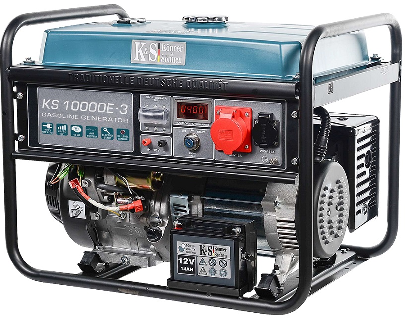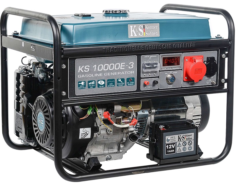 Для торгової марки «Könner & Söhnen» спеціально були створені двигуни серії KS, що пройшли багатогодинні та багаторівневі тести. Фірмові двигуни KS надійні, зносостійкі та економічні. Надійний двигун Könner & Söhnen відповідає всім європейським стандартам якості, в тому числі сучасному екологічному стандарту EURO V. Двигуни відповідають усім світовим та європейським стандартам якості, економічності, екологічності, в тому числі сучасному екологічному стандарту EURO V. Кожний двигун та кожний генератор мають свої індивідуальні серійні номери, що дозволяє нам контролювати якість виробництва та сервісного обслуговування. Двигуни Könner & Söhnen вирізняються легким стартом та пониженою вібрацією. Лінійка бензинових генераторів KS 10000 оснащена надійним 1-циліндровим двигуном потужністю 18 к.с.
