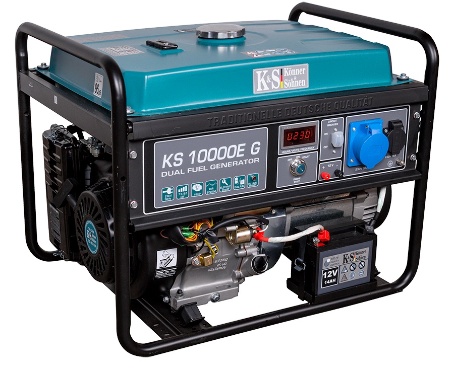 Газ — більш екологічно чисте пальне, ніж бензин. Використання газу в якості палива забезпечує менше викидів шкідливих речовин вихлопних газів в атмосферу. Використання газу в якості палива суттєво знижує ваші витрати на пальне при експлуатації пристрою, а різниця вартості між бензиновим та гібридним генератором DUAL FUEL від K&S швидко себе окупає. Можливість використовувати як з переносним газовим балоном, так і зі стаціонарною ємністю для зберігання газу (газгольдером). За умови підключення сертифікованим фахівцем. Тиск в системі подачі не повинен перевищувати 16 Бар. При роботі на зрідженому газі двигун працює з меншою вібрацією, що сприяє тривалій та стабільній роботі генератора та збільшує моторесурс двигуна. В генераторах TM «Könner & Söhnen» встановлений високоякісний альтернатор синхронного типу з 100% мідною обмоткою. Тільки мідна обмотка може витримувати максимальні навантаження без будь-яких ушкоджень, що гарантує довготривалу надійну роботу генераторної установки.