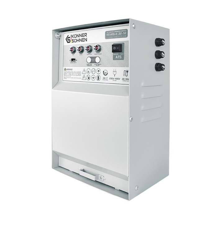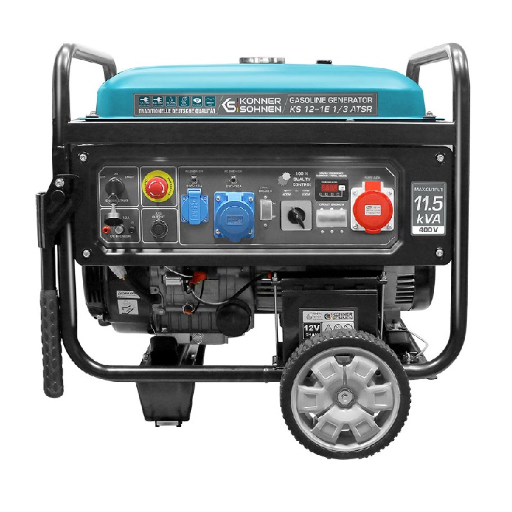 Унікальна інноваційна система перемикання фаз VTS (Voltage Transfer Switch) з майже однаковою потужністю для однофазних (230В) та трифазних (400В) споживачів. Кожний режим має власний автомат захисту. Зручна ергономічна панель управління дозволяє легко керувати всім пристроєм і не вимагає додаткових навичок;оснащена розетками, призначеними для зняття максимальної потужності генератора, LED-дисплеєм та кнопкою аварійною зупинки. Генератор має можливість підключення блоку АВР (автоматичного введення резерву). Вихід АВР має 8-піновий роз’єм. В генераторах TM «Könner & Söhnen» встановлений високоякісний альтернатор синхронного типу з 100% мідною обмоткою. Тільки мідна обмотка може витримувати максимальні навантаження без будь-яких ушкоджень, що гарантує довготривалу надійну роботу генераторної установки. Генератори «Könner & Söhnen» оснащені сталевим паливним баком збільшеного розміру (55 л.), що подовжує час роботи генератора без дозаправки. На баці розміщений індикатор рівня палива для зручності використання.