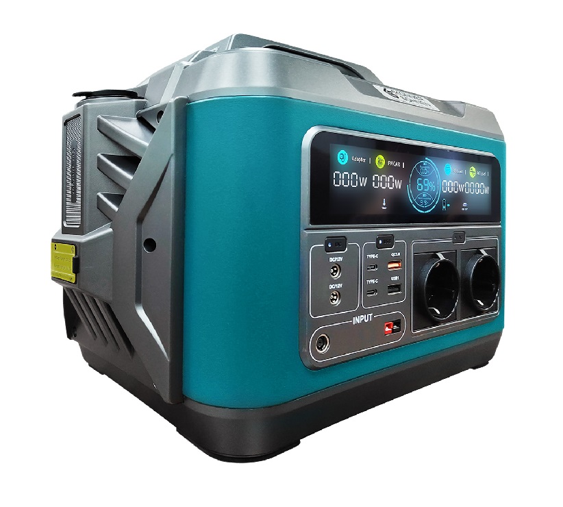 Дисплей відображає багато показників, серед яких: індикатор живлення виходу постійного струму та змінного струму, індикатор розрядки, індикатор зарядки у відсотках, температурний індикатор, індикатор несправності, світлодіодний індикатор, інформація про поточну вхідну потужність у ватах (Вт), а також час зарядки, що залишився, у годинах при споживаному струмі. Має вбудовану ультраяскраву світлодіодну лампу з трьома режимами: світло, режим блимання та режимом SOS. Зарядити станцію живлення можна кількома способами: від сонячної панелі завдяки сонячній енергії (опціонально), від мережі змінного струму за допомогою адаптера та від автомобільного прикурювача 12 В. Ця модель портативної зарядної станції може бути додатково оснащена зарядним пристроєм для прискореного заряджання Li-ion батарей, що повністю заряджає пристрій всього за 3 години.