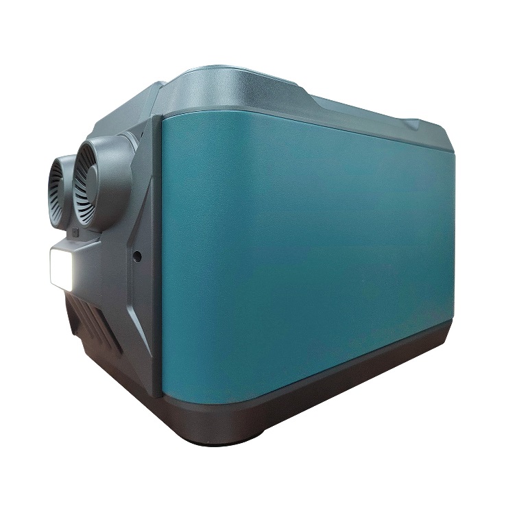 Міцний корпус з посиленої алюмінієвої конструкції забезпечує захист від пошкоджень, гарантує довготривале комфортне використання. Оснащений вбудованим вентилятором для ефективного відведення тепла та максимального охолодження. Має ручку для перенесення забезпечує легке транспортування та розміщення. Дисплей відображає багато показників, серед яких: індикатор живлення виходу постійного струму та змінного струму, індикатор розрядки, індикатор зарядки у відсотках, температурний індикатор, індикатор несправності, світлодіодний індикатор, інформація про поточну вхідну потужність у ватах (Вт), а також час зарядки, що залишився, у годинах при споживаному струмі. Має вбудовану ультраяскраву світлодіодну лампу з трьома режимами: світло, режим блимання та режимом SOS. Зарядити станцію живлення можна кількома способами: від сонячної панелі завдяки сонячній енергії (опціонально), від мережі змінного струму за допомогою адаптера та від автомобільного прикурювача 12 В. Ця модель портативної зарядної станції може бути додатково оснащена зарядним пристроєм для прискореного заряджання Li-ion батарей, що повністю заряджає пристрій всього за 3 години.