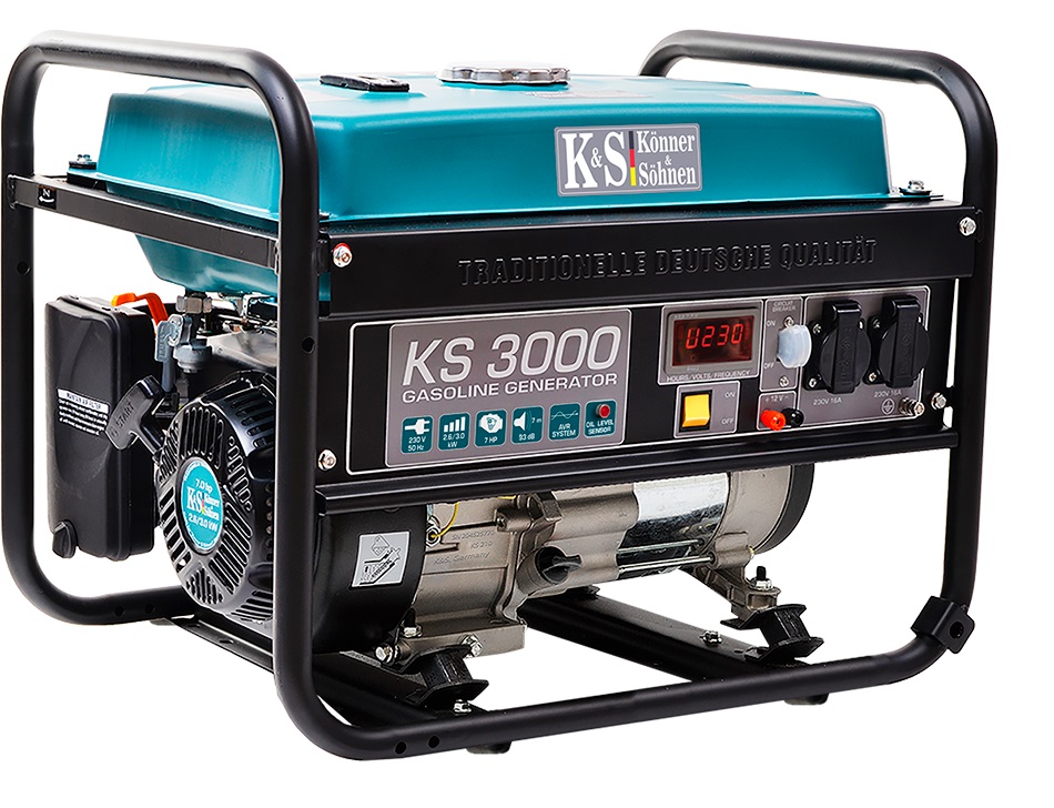 Для торгової марки «Könner & Söhnen» спеціально були створені двигуни серії KS, що пройшли багатогодинні та багаторівневі тести. Фірмові двигуни KS надійні, зносостійкі та економічні. Надійний двигун Könner & Söhnen відповідає всім європейським стандартам якості, в тому числі сучасному екологічному стандарту EURO V. Кожний двигун має індивідуальний серійний номер, що дозволяє нам контролювати якість виробництва та сервісного обслуговування. Двигуни Könner & Söhnen вирізняються легким стартом та пониженою вібрацією. Лінійка бензинових генераторів KS 3000 оснащена надійним 1-циліндровим двигуном потужністю 7 к.с. Система полегшеного старту дозволяє швидко завести двигун, не докладаючи значних зусиль. Більш потужні моделі додатково обладнані системою електричного старту для зручності використання.
