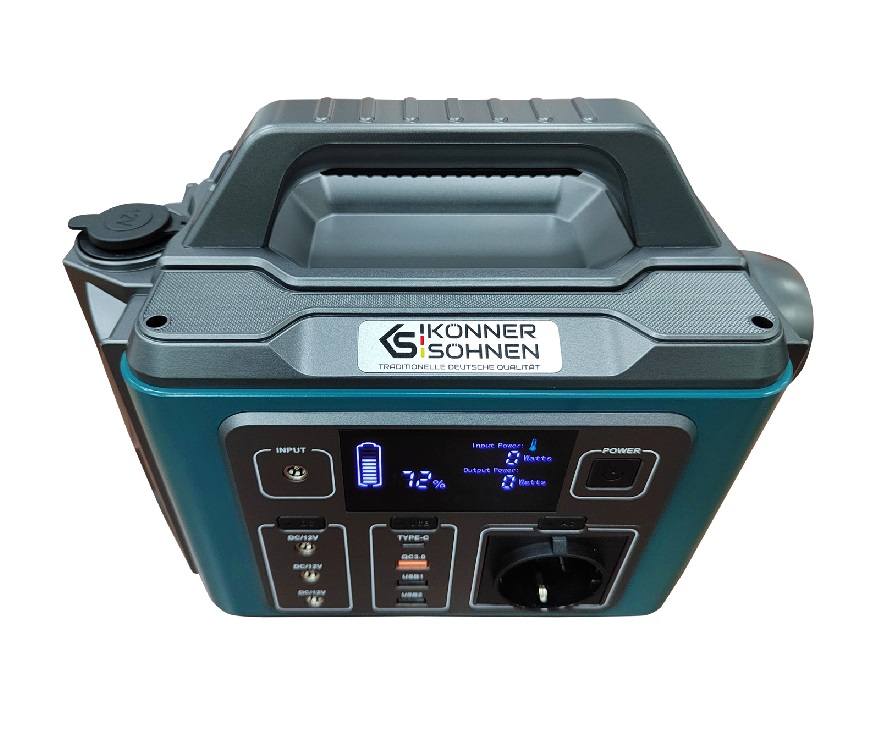 Мобільна портативна електростанція KS 300PS німецької торгової марки Könner & Söhnen стане надійним помічником для зарядки пристроїв в дорозі або в разі збоїв електропостачання. Її потужності буде достатньо для роботи такої техніки як смартфон, цифрова камера, планшет, дрон, міні-холодильник, насос для накачування, вентилятор. Вона працює тихо, тому дозволить живити електричні пристрої та насолоджуватись часом без будь-якого заважаючого шуму. Портативна електростанція оснащена високоякісними літієвими акумуляторами, які мають велику ємність, але водночас тонкі та легкі, мають тривалий термін служби а також систему контролю батареї (BMS), яка надає багатофункціональний захист: захист від перезаряду, від перенавантаження струму, від перенапруги, від короткого замикання, від перерозряду. Чиста синусоїда підходить для чутливих приладів. Всі портативні зарядні станції Könner & Söhnen оснащені технологією Power Delivery, що забезпечує швидке заряджання акумуляторів сучасних смартфонів і навіть ноутбуків. Багатопортова, сумісна з безліччю приладів та включає: 3 порти постійного струму DC, 1 порт змінного струму AC, 1 порт швидкої зарядки USB PD Quick Charge 3.0, 2 порти USB 2.4, 1 порт USB Type-C, що зручно для живлення різноманітних електронних пристроїв.
