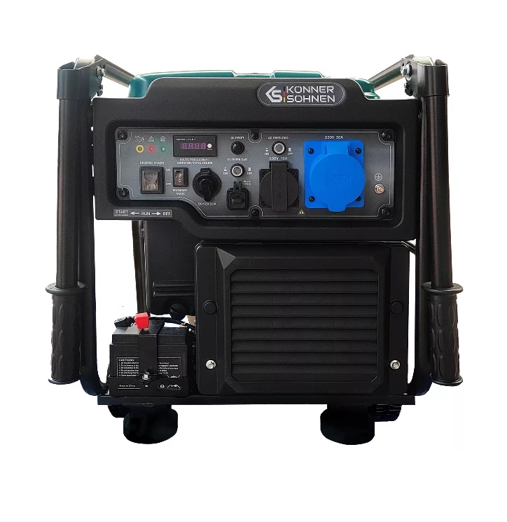 Інверторний генератор Könner & Söhnen 6500iE — сучасне автономне джерело живлення (6,5 кВт максимальна/ 6,0 кВт номінальна потужність) з правильною синусоїдою, безпечне для чутливої техніки. Підходить для сонячних електростанцій, медичного, телекомунікаційного та охоронного обладнання. Оснащений електростартером, потужним двигуном EURO 5, режимом ECONOMY MODE (до 50% економії палива). LED-дисплей, що показує вольтаж, частоту струму, кількість відпрацьованих мотогодин, зручна панель керування. Є розетка змінного струму 1×16А (230В), розетка постійного струму 12B/8.3А, USB QC 3.0 + Type C.