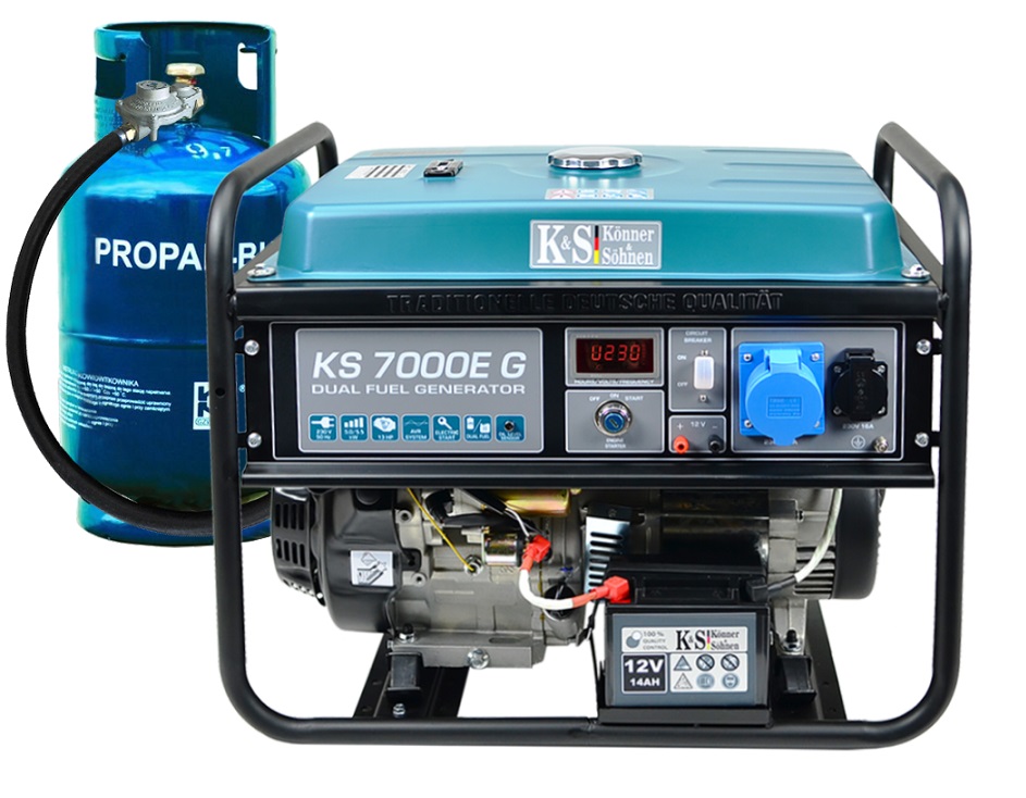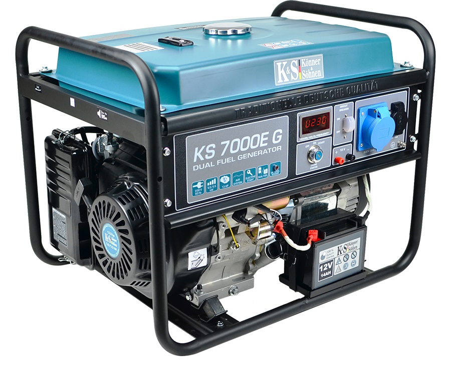 Газ — більш екологічно чисте пальне, ніж бензин. Використання газу в якості палива забезпечує менше викидів шкідливих речовин вихлопних газів в атмосферу. Використання газу в якості палива суттєво знижує ваші витрати на пальне при експлуатації пристрою, а різниця вартості між бензиновим та гібридним генератором DUAL FUEL від K&S швидко себе окупає. Можливість використовувати як з переносним газовим балоном, так і зі стаціонарною ємністю для зберігання газу (газгольдером). За умови підключення сертифікованим фахівцем. Тиск в системі подачі не повинен перевищувати 16 Бар. При роботі на зрідженому газі двигун працює з меншою вібрацією, що сприяє тривалій та стабільній роботі генератора та збільшує моторесурс двигуна. В генераторах TM «Könner & Söhnen» встановлений високоякісний альтернатор синхронного типу з 100% мідною обмоткою. Тільки мідна обмотка може витримувати максимальні навантаження без будь-яких ушкоджень, що гарантує довготривалу надійну роботу генераторної установки.