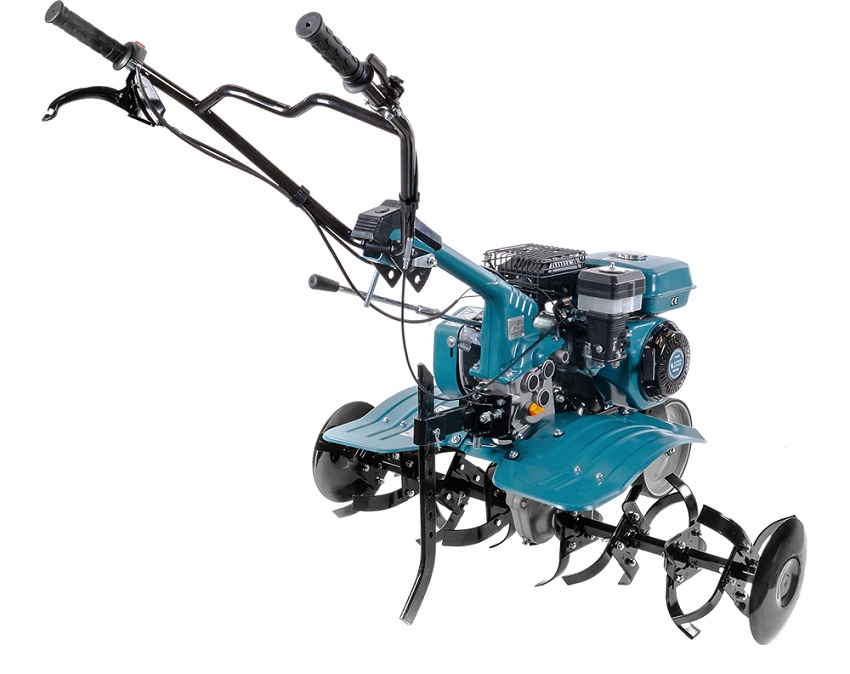 Двигун культиватора приводиться в дію ручною системою запуску. Просто потягніть ручку стартера, і двигун починає працювати. Ергономічна панель управління дозволяє швидко управляти і легко маневрувати культиватором. Можливість вертикального регулювання ручок. Ковані шаблевидні фрези підходять для використання культиватора з будь-яким типом ґрунту, як з цілинним, так і з більш доглянутим. Для захисту рослин при оранці передбачені захисні бокові диски. Фрези збираються групою з 4-х ножів. Металеві диски входять до комплекту. Всі з’єднання і вузли кріплень досконало продумані, розроблені з запасом міцності для тривалого і комфортного використання культиватора. Дані моделі оснащені додатковою захисною решіткою для уникнення опіків.