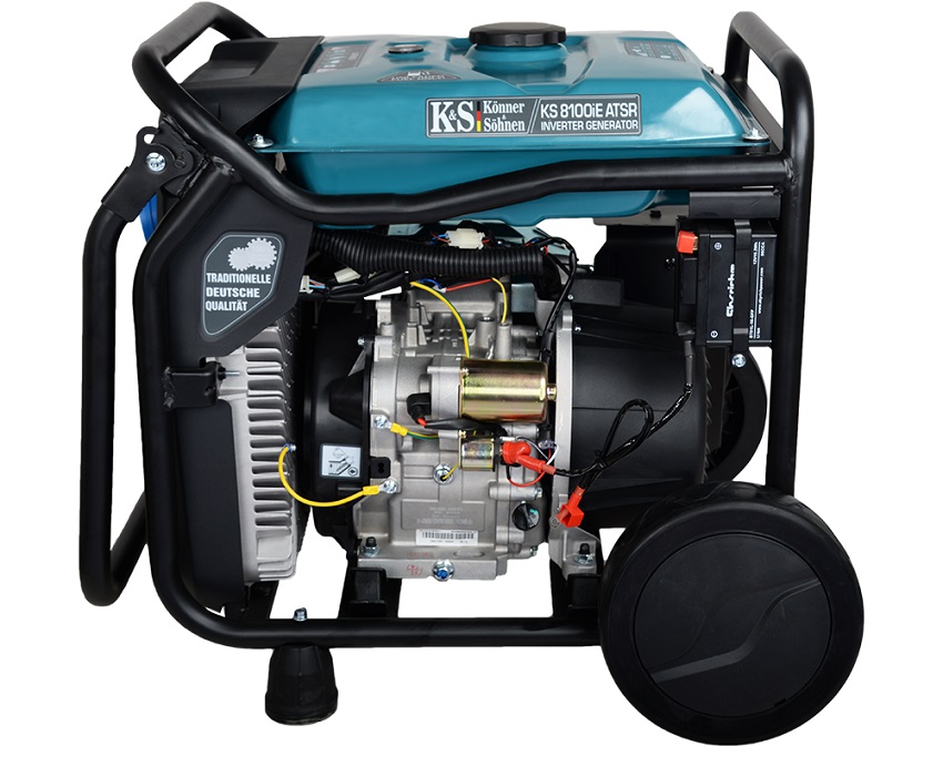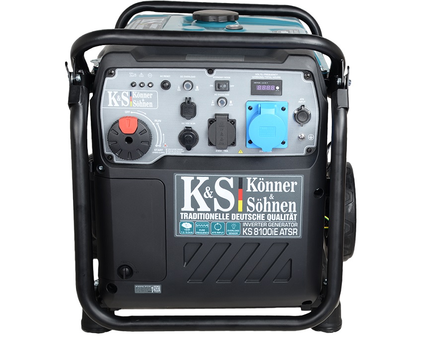 Генератор KS 8100iE ATSR німецької ТМ «Könner & Söhnen» — це зручне джерело електроенергії. Вбудований електронний блок з мікропроцесорним управлінням генератора забезпечує максимально стабільну частоту 50 Гц і напругу 230В. Має можливість підключення системи автоматичного введення резерву (АВР). Вихід АВР має 8-контактний роз’єм. Економічний режим дозволяє знизити витрату палива до 50% при малих навантаженнях завдяки зниженню оборотів двигуна. Альтернатор з мідною обмоткою і потужний двигун K&S гарантують безаварійне і тривале використання та відповідають всім європейським стандартам якості. Наявність LED-дисплея дає можливість якісніше контролювати роботу генератора і своєчасно проводити його технічне обслуговування.