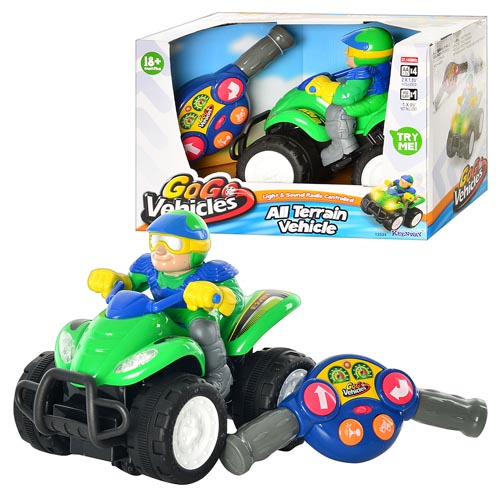 Выполнен в ярких цветах он оснащён световыми и звуковыми эффектами. Отличная радиоуправляемая игрушка для малыша – квадроцикл с водителем от Keenway. Ребенок сможет самостоятельно управлять личным транспортом при помощи пульта, который сделан в виде руля.
