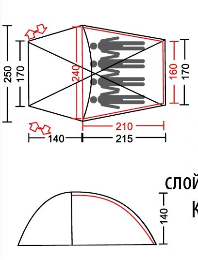 Коментарий: очень правильная продуманная конструкция палатки. Во время дождя вода никогда не затекает вовнутрь