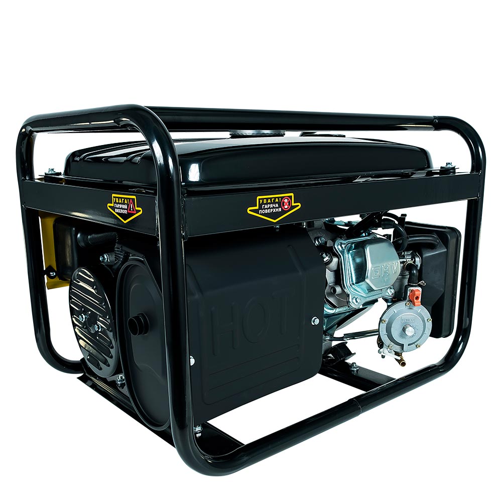 Генератор і двигун закріплені на міцній металевій рамі за допомогою демпферних опор, завдяки чому під час роботи агрегат має стійке положення, а рівень шуму на максимальній потужності становить 75 дБ.