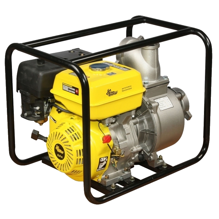 Мотопомпа бензиновая КБМ-80 представляет собой мощный бензиновый насос, способный перекачивать чистую и слабозагрязненную воду в больших объемах на большие высоту и расстояние. максимально допустимая фракция в составе воды – 5 мм. Эта надежная и практичная модель поможет решить задачи с водоснабжением, поливом земельных участков, орошением, забором воды из колодцев, водоемов, бассейнов, наполнение емкостей, используется при тушении очагов пожаров. Мотопомпа состоит из двух основных узлов, закрепленных на прочной металлической раме – мощного 4-тактного одноцилиндрового двигателя внутреннего сгорания объемом 196 см³ (мощность 6,5 л.с.) и центробежного самовсасывающего водяного насоса в алюминиевом корпусе. Такая простота и надежность гарантирует длительный срок службы изделия. Запуск двигателя производится ручным самовозвратным стартером, прилагая минимум усилий. Конструктивно разработанная система воздушного охлаждения исключает перегрев двигателя и позволяет долгое время без перерыва перекачивать воду. Работая от четырехтактного одноцилиндрового двигателя внутреннего сгорания, мотопомпа КБМ-80 отлично зарекомендовала себя в полевых условиях, не будучи привязанной к электросети.