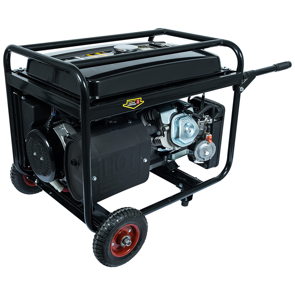 Генератор і двигун встановлені на міцній металевій рамі за допомогою демпферних опор, завдяки чому під час роботи агрегат має стійке положення, а рівень шуму на максимальній потужності становить 78 дБ.