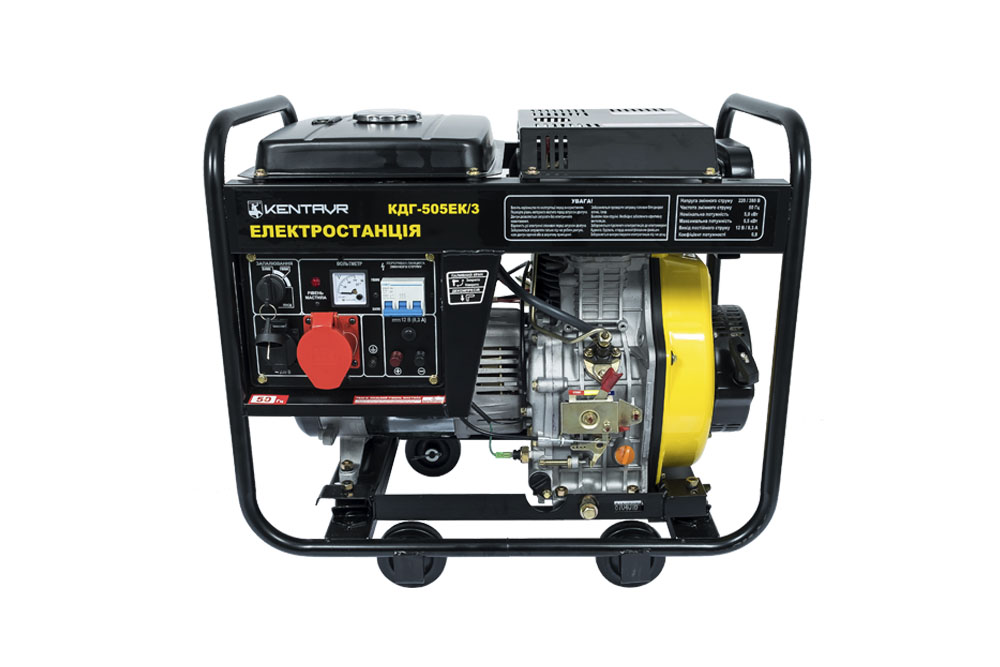 Генератор дизельний Кентавр КДГ-505ЕК/3 з електричним стартером – чудовий вибір для забезпечення електроенергією будинку та прилеглої до нього ділянки території, заміського будиночка або дачі, а також невеликого складського приміщення. Дану модель можна використовувати в якості основного, або аварійного джерела електроживлення в тій місцевості, де відсутня стаціонарна електромережа, або трапляються перебої з постачанням електроенергії.