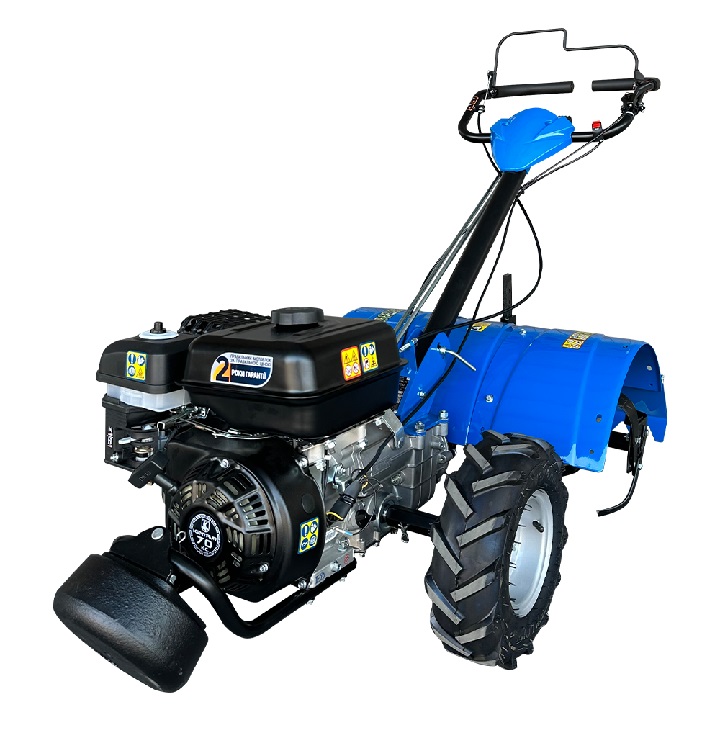 Така конструкція мотоблока дає масу переваг і працювати з ним набагато легше, зручніше та ефективніше. Потужність бензинового двигуна − 7 к.с. Цього цілком достатньо для культивації більшості типів ґрунтів, за винятком кам'янистих. Навіть якщо в ґрунті присутні рослинні залишки або бур'яни, вони без проблем перемелюються роторною ґрунтофрезою, що обертається з високою швидкістю. Головне − вчасно чистити ножі фрези. Для зручності очищення фрези задня частина захисного крила зроблена відкидною. Сумісність з навісним обладнанням. Ще одна відчутна перевага мотоблока МБ-40-1С/G перед звичайними культиваторами − можливість роботи з іншими навісними інструментами. Можна (через спеціальну перехідну зчеплення) встановити підгортальник, плуг або плоскоріз. До речі, якщо ґрунт пухкий, можна встановити металеві ґрунтозачепи замість пневматичних коліс − для кращого зчеплення. Таким чином, зупинивши свій вибір на мотоблоці МБ-40-1С/G, ви отримуєте надійного і універсального помічника в будь-якому господарстві.
