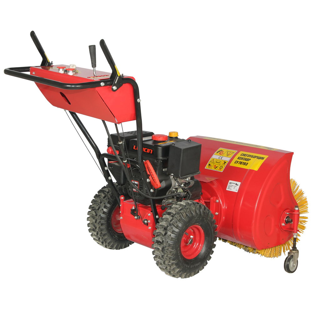 САМОХОДНАЯ КОЛЕСНАЯ УБОРОЧНАЯ МАШИНА МУ7070Е ОБОРУДОВАНА ЦИЛИНДРИЧЕСКОЙ МЕТАЛЛОПЛАСТИКОВОЙ ЩЕТКОЙ, 4 ТАКТНЫМ БЕНЗИНОВЫМ ДВИГАТЕЛЕМ МОЩНОСТЬЮ 7,0 Л.С., ФРИКЦИОННОЙ КОРОБКОЙ ПЕРЕДАЧ С 4-МЯ СКОРОСТЯМИ ДВИЖЕНИЯ ВПЕРЕД И 2-МЯ НАЗАД, ЭЛЕКТРОСТАРТЕРОМ, ФАРОЙ И ПОДОГРЕВОМ РУКОЯТОК. МАШИНА С ОДЛИНАКОВЫМ УСПЕХОМ МОЖЕТ ИСПОЛЬЗОВАТЬСЯ КАК ДЛЯ СМЕТАНИЯ СНЕГА «ДО СУХОГО АСФАЛЬТА», ТАК И ДЛЯ ТЩАТЕЛЬНОЙ УБОРКИ СЫПУЧЕГО МУСОРА – ЛИСТЬЕВ, ВЕТОК, КАМЕШКОВ, ПЕСКА И Т.П.
