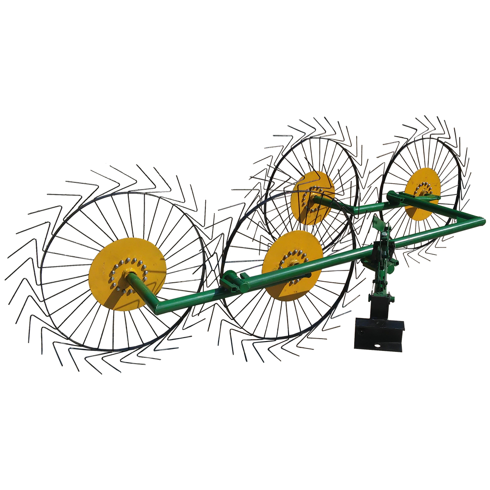 Благодаря тому, что диски установлены на шарнирно-подвижных рамах, они отлично повторяют рельеф почвы и эффективно сгребают сено. Колеса установлены на подшипники и потому обращаются легко и маневренно. Прутья изготовлены из высокоуглеродистой стали, что обеспечивает им высокую прочность и пружинистость. При необходимости любой из узлов можно отремонтировать или заменить.