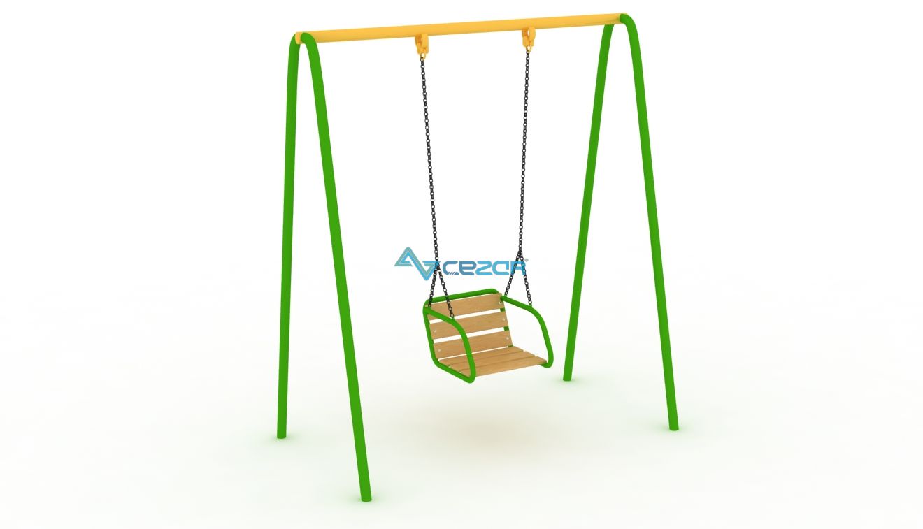 Элемент детского оборудования для детских площадок. Одинарная металлическая детская качеля на гибкой подвеске.