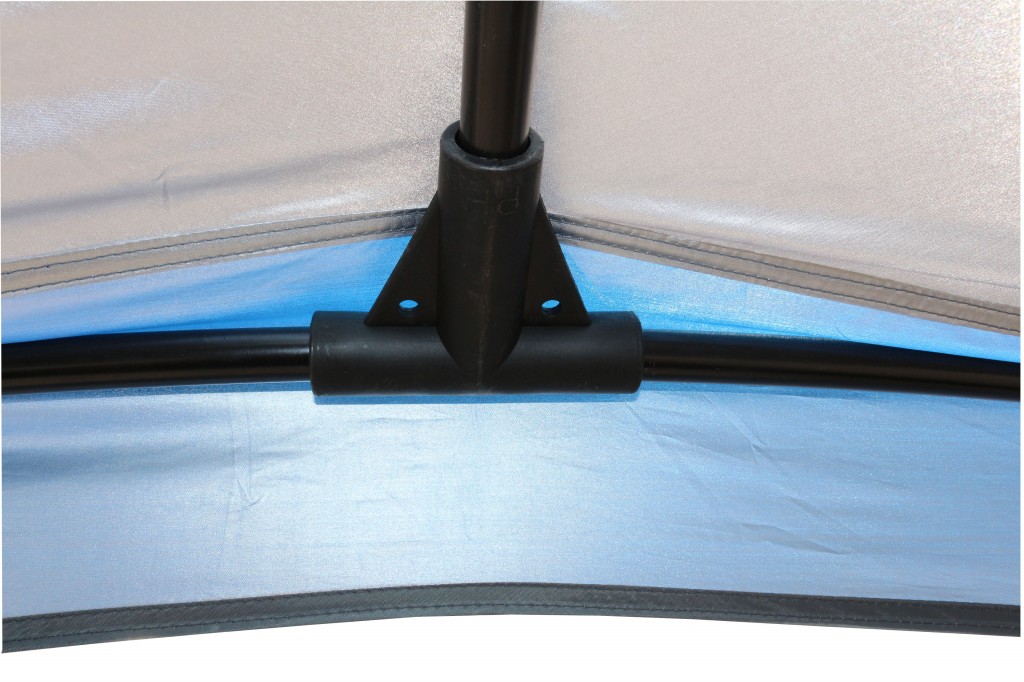Удобная и простая в использовании палатка спасет вас от ожогов в то время, когда находиться под палящими лучами уже невмоготу, а до серьезного укрытия бежать далеко. Отличное решение для отдыхающих с маленькими детьми, которых просто необходимо спрятать в тени, а под сводами этой палатки можно спокойно вздремнуть даже в самое жаркое время, не боясь получить солнечный удар