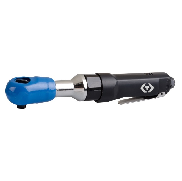 Преимущества ручного инструмента в компактности и легкости. Пневматическая трещотка 1/2" 102 Нм разрешает подобраться к любым элементам крепежа в труднодоступных местах автомобиля, станка или агрегата. Полудюймовый квадрат трещотки надежно удерживает биты под любым углом. У инструмента удобная большая кнопка включения и есть переключатель направления вращения. Излишки воздуха сбрасываются через специальные отводные отверстия в верхней части ручного инструмента.