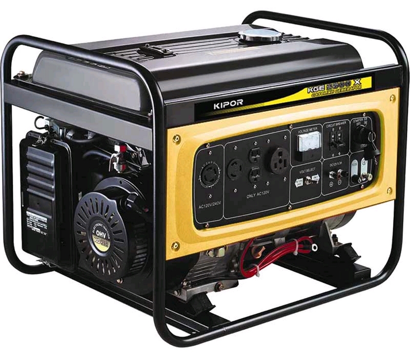 Бензогенератор открытого вида Kipor KGE6500Х, расположенный на раме. Служит резервом электросети на предприятии и в дачном доме в сочетании эксплуатации однофазного электроинструмента в строительном деле. Автоматически регулируется напряжение, за счет чего оно вырабатывается стабильное и качественное. Автоматическая защита служит для предотвращения переработки и отключения аппарата при условии снижения уровня масла. Электронное зажигание работает на автомате, а топливный бак достаточного объема для 16 часов стабильной работы. Крепкая надежная рама и балансирование коленного вала обеспечивают минимальную вибрацию. Срок службы двигателя увеличен благодаря верхнему местоположению клапанов. Срок службы бензогенератора значительно продлен за счет использования комплектующих только высокого качества: коленвал, отшлифованный током высокой частоты, чугунная гильза цилиндра, устойчивая к износу, хром-вольфрамовые седла для клапана высококачественного сплава, усовершенствованная система охлаждения.