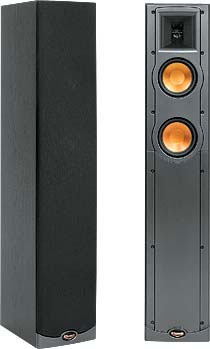 Мы представляем. Акустические системы Klipsch RF-10 [?600]. Напольный фазоинвертор (много за малые деньги!) с двумя алюминиевыми драйверами диаметром 11,4 см и титановым (!) куполом ВЧ диаметром 2,5 см, нагруженным на знаменитый рупор Tractrix c выходной гранью 12,7 см. Частота раздела традиционно низка - 2280 Гц, отверстие инвертора выходит на заднюю стенку. Bi-Wiring.