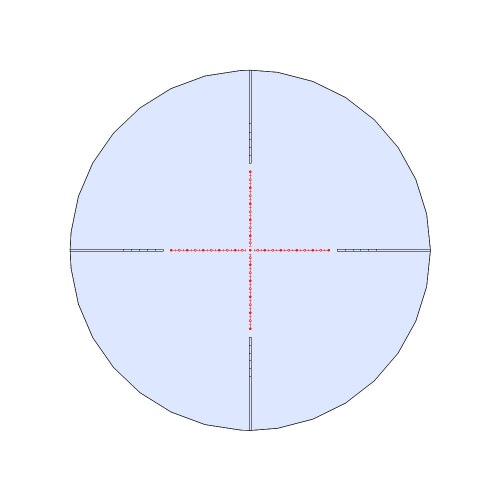 Оптичний приціл KONUS DIABLO 6-24x50 1/2 MIL-DOT IR з прицільною сіткою Exclusive 1/2 Mil-Dot у другій фокальній площині має двоколірне, багаторівневе підсвічування перехрестя: синій/червоний. Відстройка паралакса здійснюється бічним барабаном, поєднаним з регулятором управління підсвічуванням. Найтонше лазерне гравіювання сітки чудово покаже себе навіть при максимальному, 24-кратному збільшенні. Тактичні барабани введення поправок мають блокування та швидке обнулення налаштувань, а ціна кліка становить 1/10 MRAD за одне клацання.