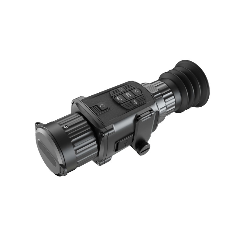 Мощная оптика с увеличением 2,5 - 20х позволяет обнаруживать теплые объекты на рекордных расстояниях. При максимальном приближении будут отчетливо видны все мельчайшие подробности цели и элементы окружающей обстановки. Цифровой зум х1,х2,х4,х8 дает возможность увеличивать картинку плавно и дискретно. Прицел построен на длиннофокусном германиевом объективе F19 / f 1.0 с углом поля зрения в 9.24° × 6,94°, позволяющtм видеть перед собой область пространства размером 16,2 х 12,1 метров на удалении 100 метров.