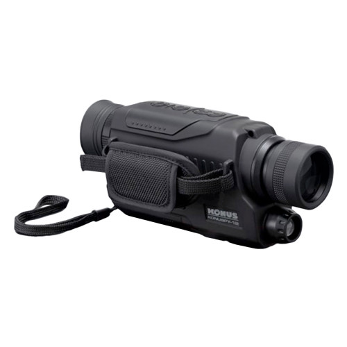 Монокуляр нічного бачення KONUS Konuspy-12 має функцію плавної зміни збільшення в діапазоні від 1х до 8х. Зображення відображається на кольоровому РК-екрані. Якщо увімкнути функцію ІЧ-підсвітки, зображення буде чорно-білим. Наведення різкості здійснюється за допомогою кільця фокусування на об'єктиві. Працює монокуляр від 3-х батарейок типу АА.