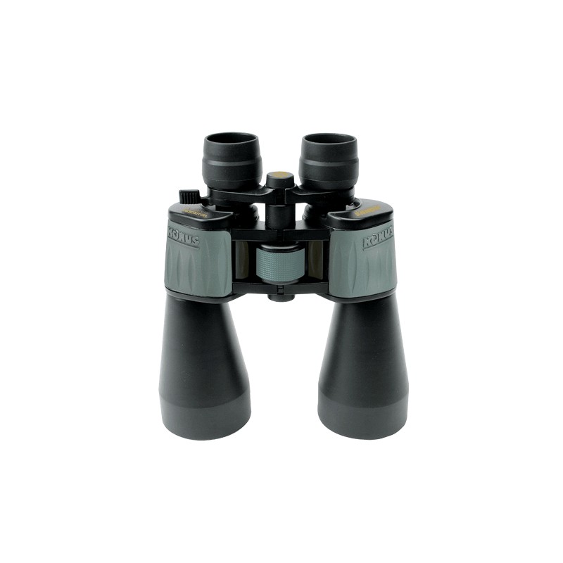 Этот биноль Konus Newzoom 10- 30x60 оснащён зумом, перекрывающим необходимый диапазон увеличений для данной апертуры. Модель оборудована призмами Порро-конструкции, имеет брызгозащищённый дизайн и просветление оптических поверхностей. С применением увеличения свыше 15-20х бинокль становится весьма чувствиетльным в вибрациям рук, поэтому, для наблюдений с большим увеличением, его стоит устанавливать на штатив.